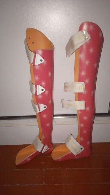 - 1 cüt sərt plastik AFO/KAFO tipli ortopedik breys – daban-dizə qədər uzanan, iç hissəsi narıncı, çölü ulduz naxışlı çəhrayı. Ayaqüstü platforma ilə formalaşdırılıb. Hər ayaqda çoxnöqtəli fiksasiya üçün 4 ədəd tənzimlənən yapışqan kəmər (ayaqüstü, baldır və diz hissələrində).