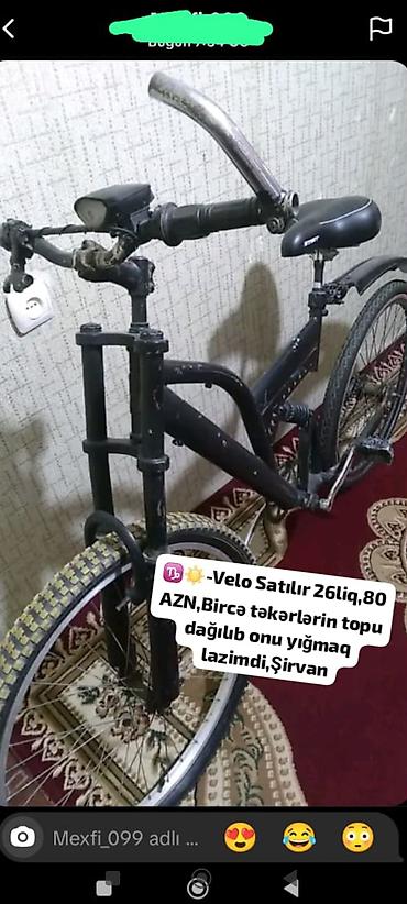 Mətn üzrə məlumat: “Velo satılır, 26-lıq, 80 AZN. Bircə təkərlərin topu dağılıb, onu yığmaq lazımdır. Şirvan.”