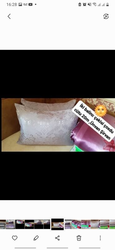 - Yastıq: Şəkildə olan 2 ədəd yastıq. Üzərində yazı: “İki balıncə. Çəkisi çoxdu. Cütü 20 m. Ünvan Şirvan”.