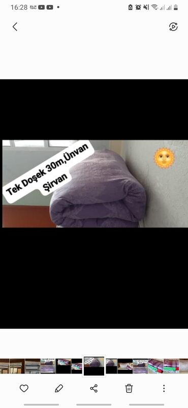 - Döşək: Tək ölçü. Üzərində yazı: “Tək döşək 30 m, ünvan Şirvan”.