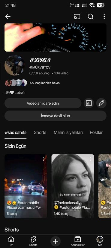 Video reklama✍🏻HESAB SATİLİR VEYA BARTER EDİLİR PUL QAZANMA AKTİV DEYİL XARİCİ KESVETİDİR BİLEN BİLİR ✍🏻Xidmət: YouTube kanalının idarə edilməsi və qısa video (Shorts) kontenti