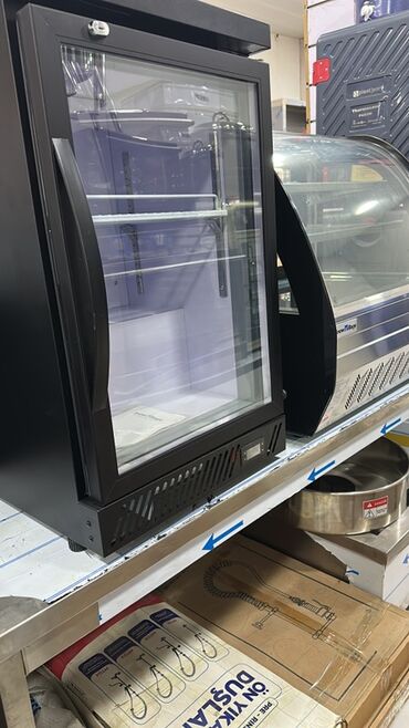 - Şüşə vitrinli soyuducu/soyudulan vitrina: Ön şüşə qapı, içəridə tənzimlənən rəflər, aşağı hissədə havalandırma panjurları və açma/söndürmə düyməsi. Məhsulların vitrinlənməsi və sərin saxlanması üçün nəzərdə tutulub; desert, içki və paket məhsullar üçün əlverişlidir.