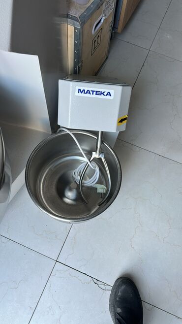 - Xəmir yoğurma aparatı (MATEKA): Paslanmayan polad qarışdırma qabı, spiral tip yoğurma qolu, üst hissədə mühərrik bloku. Elektriklə işləyir, şnur və fiş daxilindədir. Çörəkxana, pizza, şirniyyat və kafe mətbəxlərində xəmirin bərabər yoğrulması üçün uyğundur.