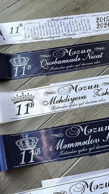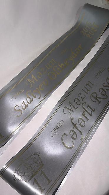 Rengli lent qizili yaziynan 4m. Sadə lentlər üstündə birincilər,məzun yazan lentlər 0.5 AZN dur.