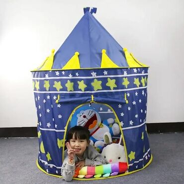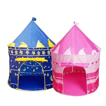 Uşaqlar üçün hazırlanmış bu qala formalı çadır, kiçiklərinizə əylənmək və xəyal dünyasına dalmaq üçün özəl bir məkan təmin edir. Çadırın piramidaşəkilli yuxarı hissəsi və qala dizaynı onu cəlbedici edir. Giriş hissəsindəki açıq qapı rahat daxil olmanı və çıxışı təmin edir. Parlaq rənglər və ulduz və tac naxışları ilə bəzədilmiş bu çadır, uşaq otağında və ya bağçada oyun üçün ideal seçimdir. Yüngül və daşınması asan olan bu çadır, uşaqların xəyal gücünü inkişaf etdirərək saatlarla əyləncəli vaxt keçirməsinə imkan verir.