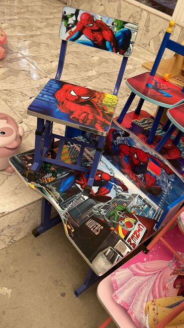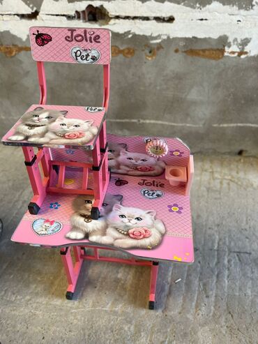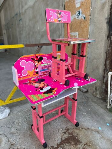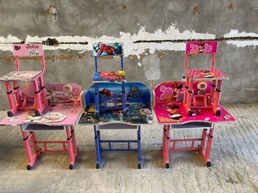 Uşaqlar üçün hazırlanmış, tənzimlənə bilən hündürlüyə malik parta və oturacaq dəsti. Oturacaq və stolun səthində cizgi film personajlarının təsvirləri var. Stolun altında kitablar və dəftərxana ləvazimatları üçün saxlama yeri mövcuddur. ENDİRİM EDİLDİ 50 AZN!!!!!!