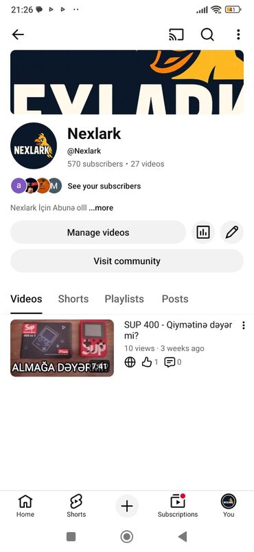 Məhsul/servis: YouTube kanalı – “Nexlark”