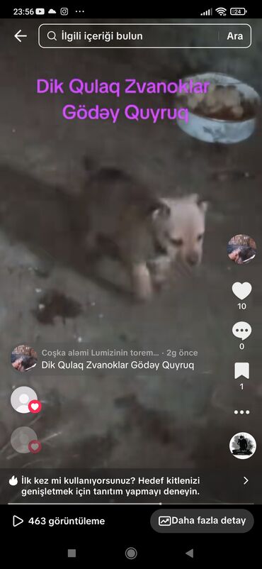 Mətnli elan: Teziqin balası – orijinal zəngli (zvanok) iti balaları Damka Məhsul təsviri: - Şəkillərdə göstərilən balaca it balaları. - Yazıda qeyd edildiyi kimi: “Teziqin balası, arginali zvanok”...