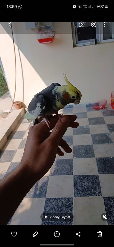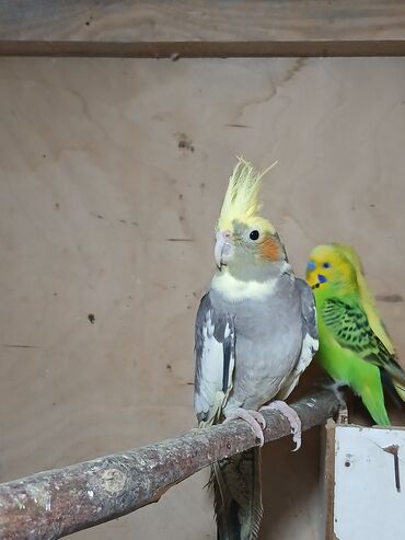 Nimfa (Cockatiel) tutuquşu - Növ: Nimfa (Nymphicus hollandicus) - Rəng: sarı-crem, yanaqlarda narıncı ləkələr, başda xas “toqqa” (çölbük) - Xasiyyət: ev şəraitinə tez uyğunlaşan, səsə və ünsiyyətə...