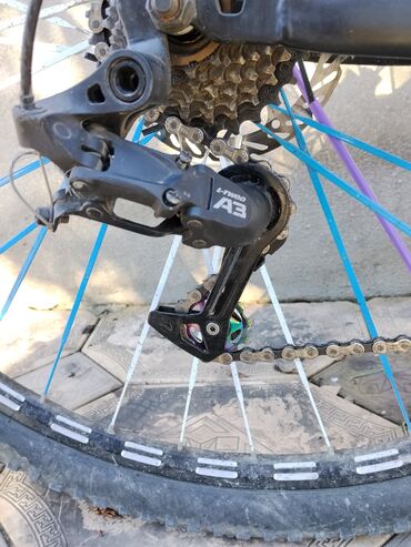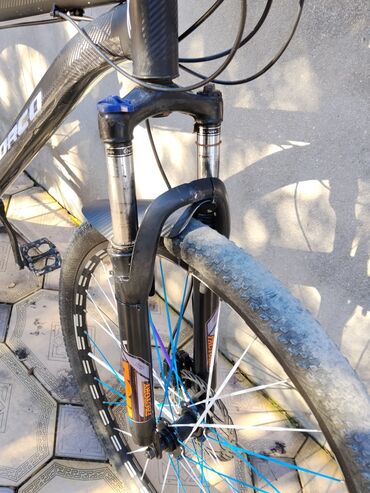 - Təkərlər: 29" disklər, müxtəlif rəngli (ağ/mavi) şpirlər, dişli off-road şinlər.