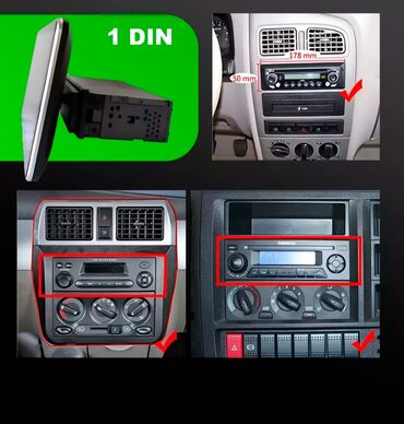 - Standart 1DIN yuvası olan avtomobillər üçün. Şəkillərdə ölçü nümunələri göstərilib (178 mm en, 50 mm hündürlük).