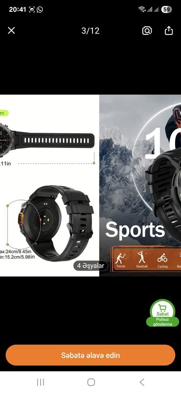 - İki kəmər seçimi görüntüdə: elastik silikon idman kəməri və metal qolbaq tipli kəmər