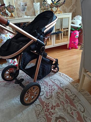 Uşaq arabası – 2-si 1-də tipli, qızılı çərçivəli, qara rəng Xüsusiyyətlər: - Qalın, yüngül alüminium çərçivə: möhkəm və asan idarə olunan konstruksiya - 2-si 1-də beşik/oturacaq bloku: yeni doğula...