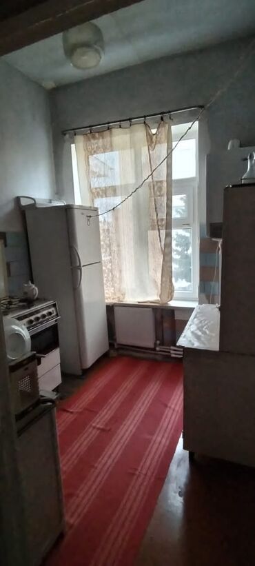 - Mətbəx: qaz plitəsi və soba, iki qapılı soyuducu, alt və üst dolablar, pəncərə və radiator, döşəmədə xalça.