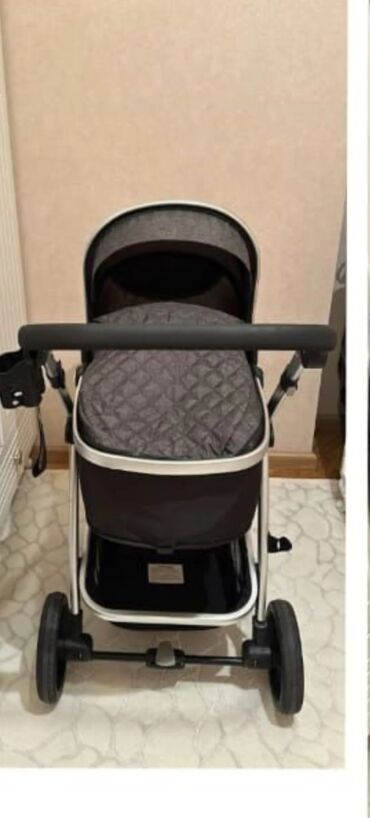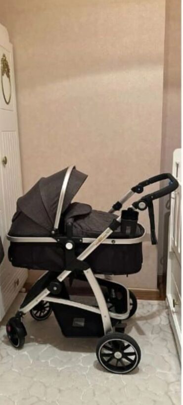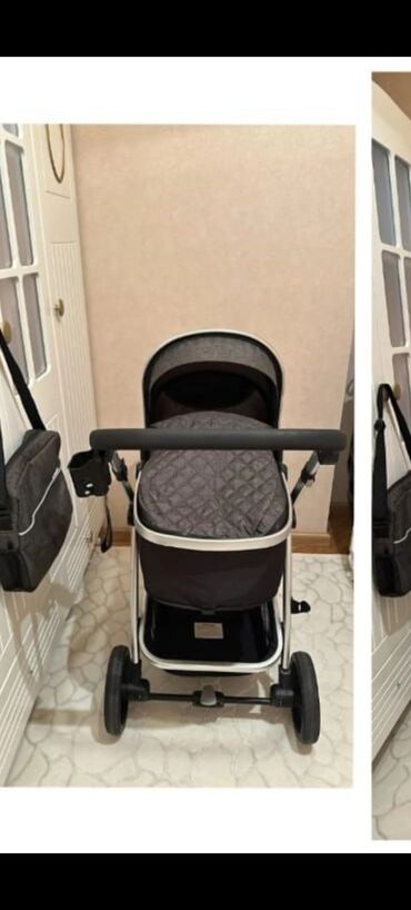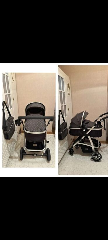 Uşaq arabası – 2-si 1-də tipli, boz/qara rəngdə.