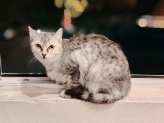 Ağ tüklü, mavi gözlü ev pişiyi - Tam ağ rəngli yumşaq kürk, çəhrayı burun və qulaqlar - Mavi, iri gözlər və incə mimikalar - Yüngül, çevik bədən quruluşu; uzun quyruq - Yaşıl antiparazit boyunluqla...