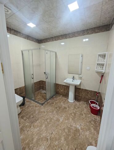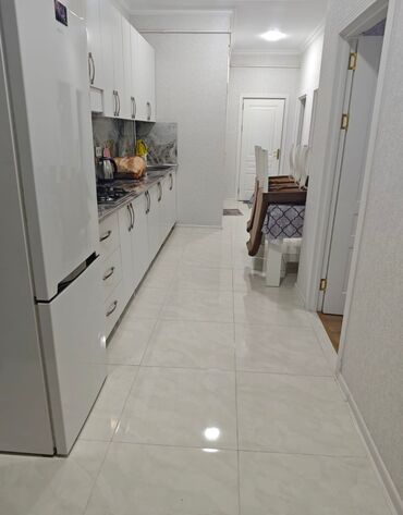- Döşəmə: otaqlarda laminat, dəhliz və mətbəxdə parlaq keramik plitə.
