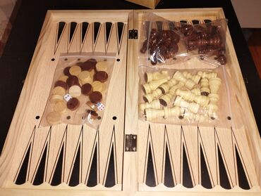 - Qatlanan taxta korpus: açıldıqda iç hissə nərd sahəsi, üst səth şahmat/dama taxtası