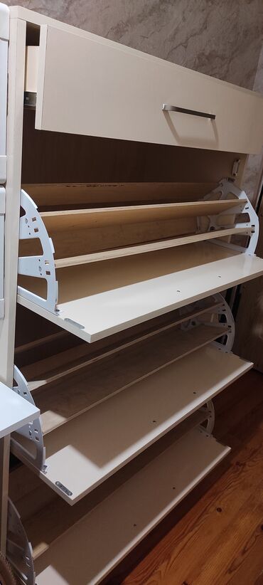 - Mexanizm: hər bölmədə fırlanan/düşən sistem – ayaqqabıları səliqəli və yığcam saxlayır, hər qapıda metal yan dayaqlar.