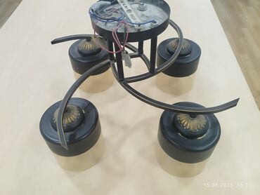 - Quruluş: Dörd ədəd plafon mərkəzi metal baza ətrafında yerləşir; dekorativ əyri metal elementlər