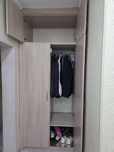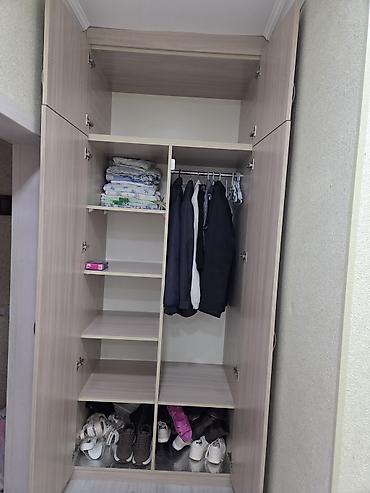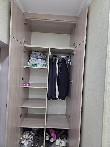 - Sağ bölmə: asılqan borusu ilə geyim üçün şöbə; aşağıda ayaqqabı və ya qutular üçün rəfli yer.