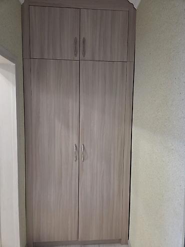 - Ölçü təsviri (təxmini, şəkillərə əsasən): dar dəhlizlərə uyğun, tavanadək hündür konstruksiya; eni iki qapılı standart moduldan bir qədər dardır.