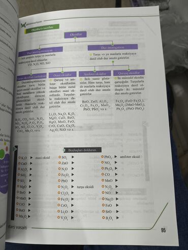- Abituriyentlər üçün strukturlaşdırılmış izahlar: oksidlərin təsnifatı, turşu–əsas reaksiyaları, silikatlar və digər əsas mövzular.
