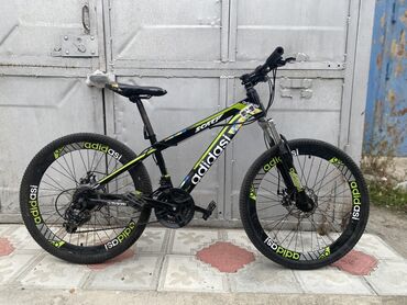 Velosiped – dağ tipli, hardtail karkas. - Rəng: qara, yaşıl yazılar və loqotiplər (adidas markalı dizayn). - Karkas: alüminium görünüşlü hardtail, klassik üçbucaq quruluş. - Asqı: ön amortizatorlu...