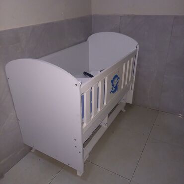Ağ rəngdə taxta beşik – yelləncək mexanizmi ilə