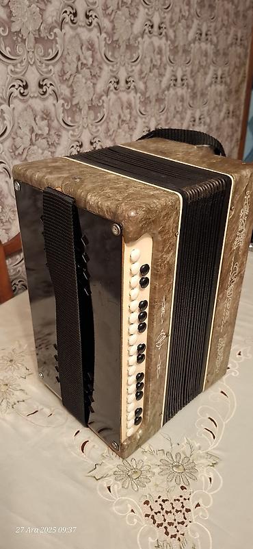 Akkordeon – klavişli və bas düyməli(20 ilin ) - Tip: Klavişli akkordeon, sağ tərəfdə pianino tipli klaviatura, sol tərəfdə bas düymələri - Korpus: Qəhvəyi/perlamutr effektli örtük - Məhfəz (mexa):...