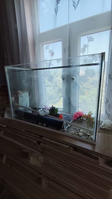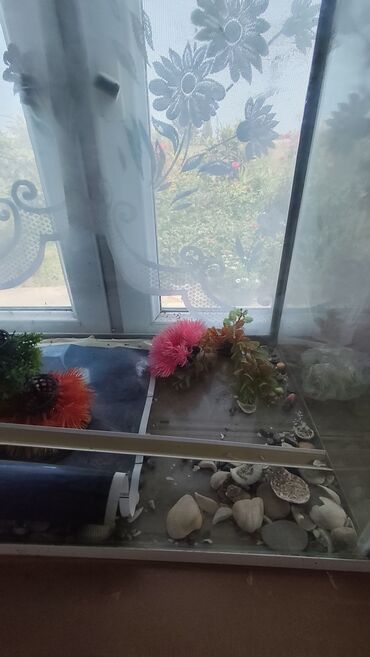 Akvarium 80 litr su tutumu var. Hündürlüyü 44 sm Eni 50 sm İçində su filtiri, Müəyyən qədər bəzək daşları Barterdə maraqlıdır( əsasən ev gülləri ilə)