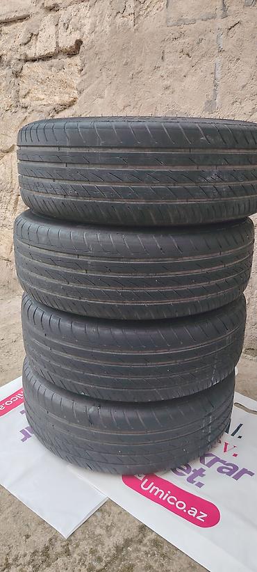 Satılır: yüngül lehimli diskli avtomobil təkərləri komplekti - Sayı: 4 ədəd (disk + şin birlikdə) - Disk: çoxşüalı dizaynlı, yüngül lehimli, gümüşü rəng - Şin tipi: yay/üçmövsüm naxışlı yol şini -...