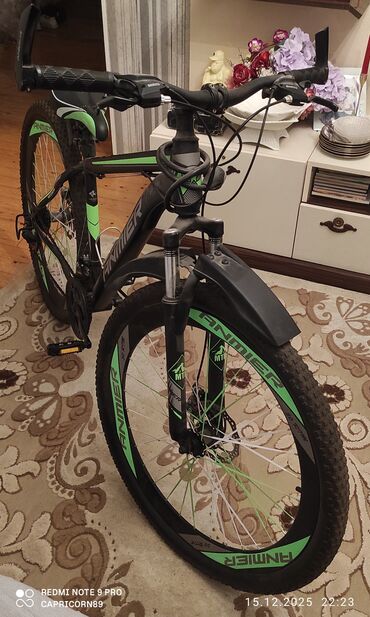 MTB velosiped – Anmier markası, qara-yaşıl dizayn.