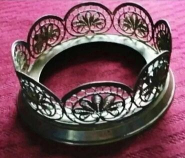 - 1 ədəd dekorativ üzük formalı sepet/stand: kənarları açıq işli (filigran) naxışlarla bəzədilmiş, bitki motivləri (yarpaq/çiçək) ilə ornamentləşdirilmişdir. Daxili çevrə şamaltı, kiçik kasalar və ya dekorativ şüşə qablar üçün uyğundur.