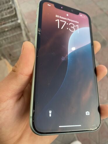 iPhone 11 face id islek pil 75. ekran deyisib. arxa krişkasinda cati var. karopka usb var