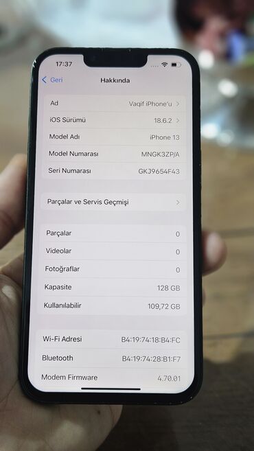 Xüsusiyyətlər: Salam İphone 13 100 pil satilir ideal veziyətdədi heçbir prablemi yoxdu ekrani pili orginallla deyişdirilib karopka adaptri var ideal 13 axtaranlar uçundu qiymetde razilaşmaq olar