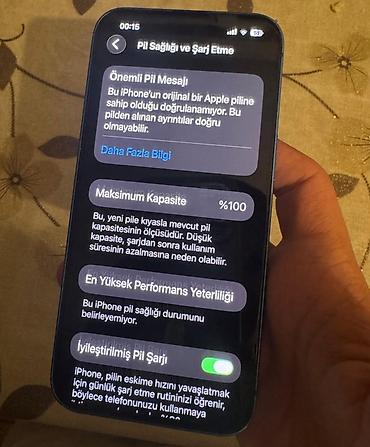- “Bu iPhone’un orijinal bir Apple pilinə sahib olduğu doğrulanamıyor” bildirişi mövcuddur (ekrandakı məlumat)