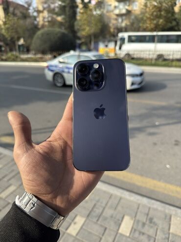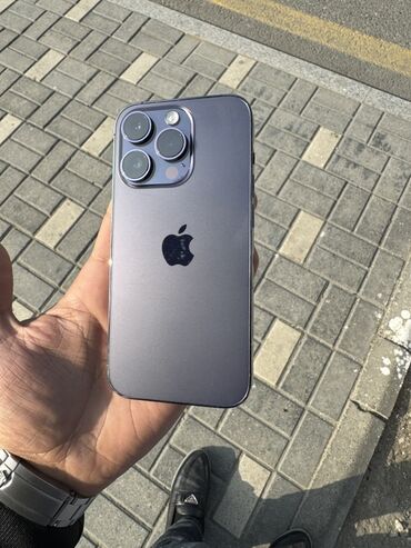 Apple iPhone (14 Pro seriyası). Tam ideal cızıqsız təmirsiz. - Rəng: Tünd bənövşəyi/Deep Purple - Korpus: Mat şüşə arxa panel, paslanmayan polad düz çərçivələr - Arxa kamera bloku: 3 linza + LiDA...