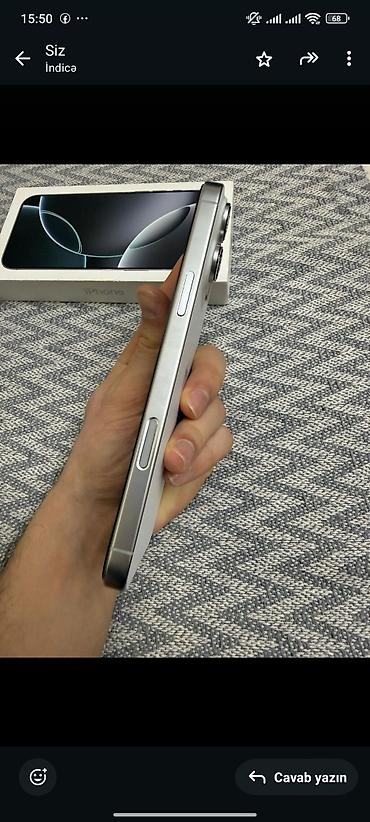 Model: iPhone 16 Pro Max Yaddaş: 256 GB RAM: 8 GB Batareya: 96% Dövr266xayiw olunur real adam zeng vursun.Barter yoxdu.Real aliciye azca endirim edecem