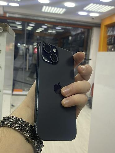 Apple iPhone 15 – qara rəng Xüsusiyyətlər: - Ekran: 6.1" Super Retina XDR OLED, Dynamic Island kəsiyi - Şüşə və alüminium korpus, USB‑C portu - Prosessor: A16 Bionic çipi, 5 nüvəli GPU - Yaddaş: (...