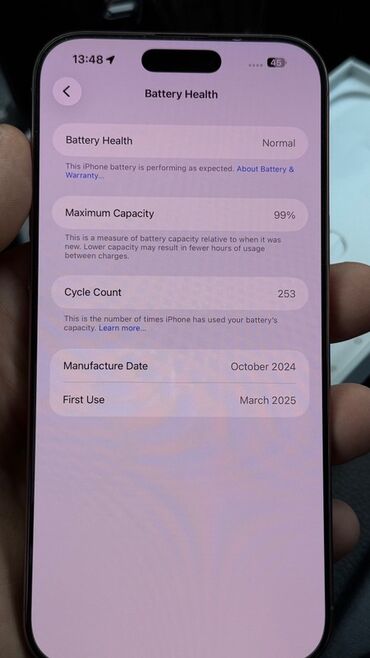 - Batareya: Battery Health – Normal; Maksimum tutum 99%