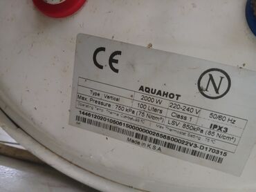 AQUAHOT vertikal su qızdırıcısı (elektrik, anbar tipli) - Brend/model: AQUAHOT, EX4 / EWH 100 (etiketdə “AQUAHOT”, “VERTICAL” qeyd olunub) - Həcmi: 100 litr - Güc: 2000 W - Gərginlik: 220–240 V, 5...