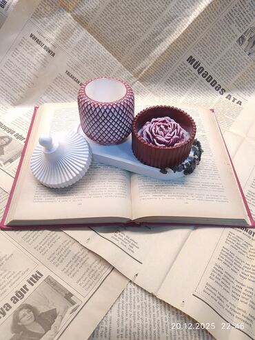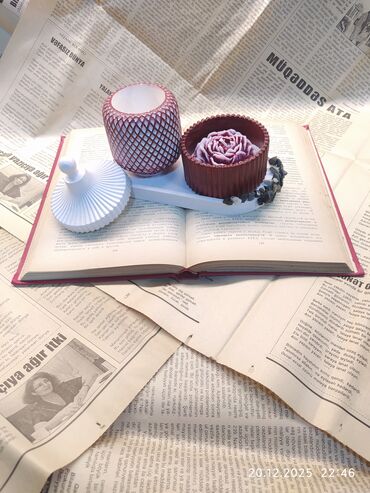 Dekorativ şam və aroma dəsti - Müxtəlif formalarda əl işi şamlar: altıbucaqlı qar dənəsi relyefli, ribalı silindr, dəniz mövzusunda ilbiz qabığında mavi şam, ulduz formalı mavi şam və ürək formalı...