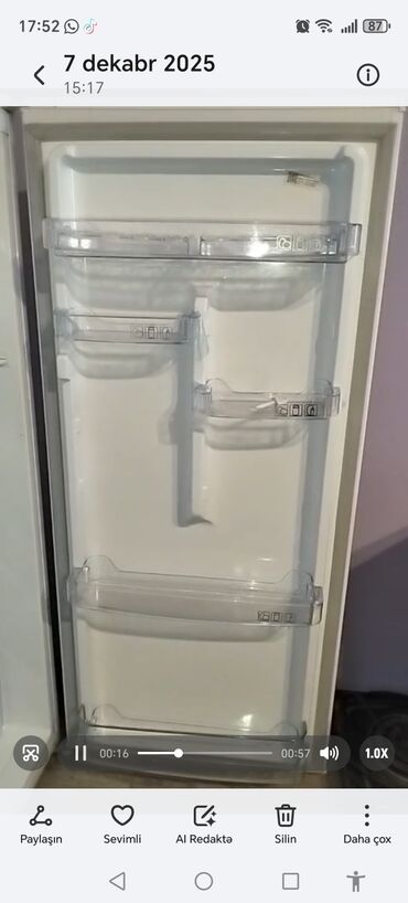 - Qapıda 4 ədəd şəffaf rəf: yumurta, sous/konserv, butulka və xırda ərzaqlar üçün