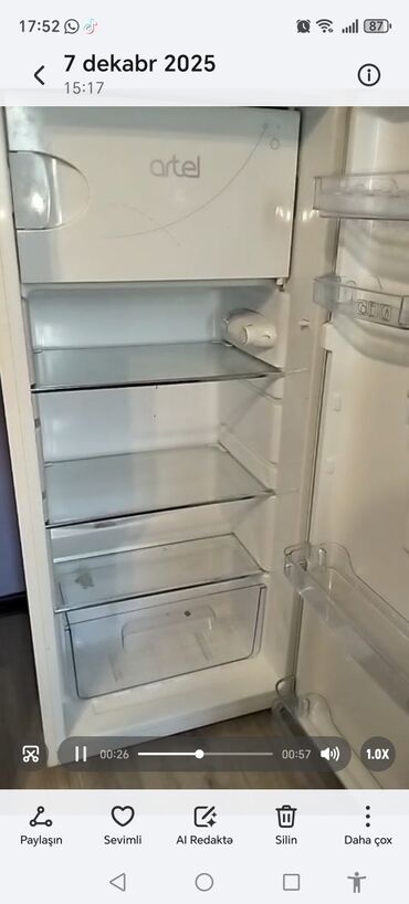 - Üst hissədə daxili dondurucu bölməsi (qapaqlı)