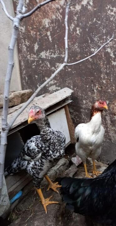 Toyuq cücələriTəmiz qan heyratılardı.7 aylığdılar.3 dənəsi xoruz 1 dənəsi fərədi.Ağ rəngli olam fərədi qalanı xoruz marağlanmağ isdiyen vhatsapda yaza bilər.1 dənə 60 manatdı