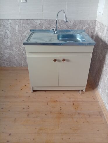 Mətbəx üçün lavabo dolabı - Material: laminat korpus, ağ içlik; qapılar taxta teksturalı dekorla - Üst hissə: paslanmayan poladdan birgözlü lavabo və sağ tərəfdə damcılıq sahəsi (quraşdırma üçün k...