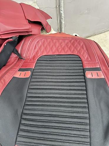 Avtomobil oturacaq üzlükləri dəsti - Model: Universal ölçü – ön və arxa oturacaqlar üçün tam dəst - Material: Qara rəngli, romb tikişli ekodəri/parça kombinasiyası; kənarlarında tünd qırmızı bordü...