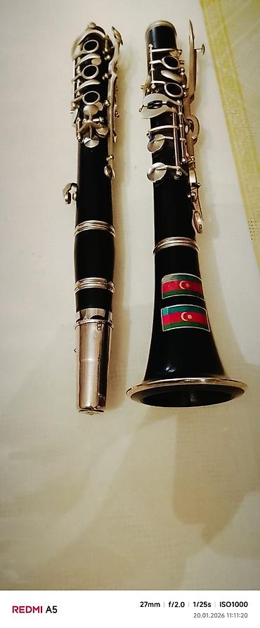 Tecili satilir🆘 Elimyandi qiymete Qara rəngdə olan klarnet musiqi aləti. Gümüşü rəngdə olan düymələri var. Orkestr və ya solo ifalar üçün uyğundur. Musiqi təhsili alanlar və ya bu sahəyə maraq göst...