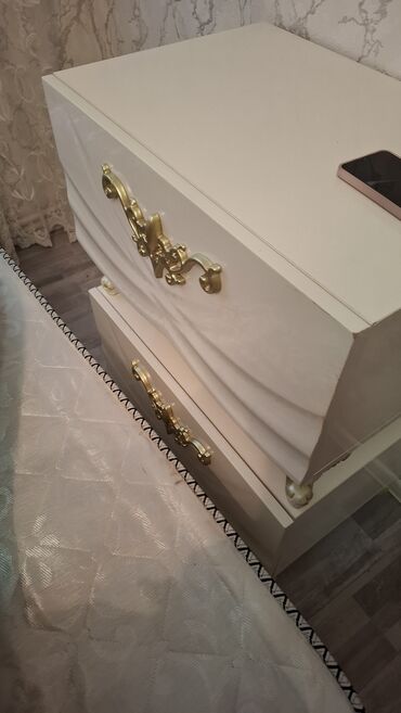 Klassik dəbdə yataq otağı dəsti Teze yatak desti, her terefi kraskalıdır, - Yataq çərçivəsi (iki nəfərlik ölçüdə), dekorativ oyma detalları və qızılı-bəzi rötuşlarla - 2 ədəd tumbə (3 çekmecəli) ...